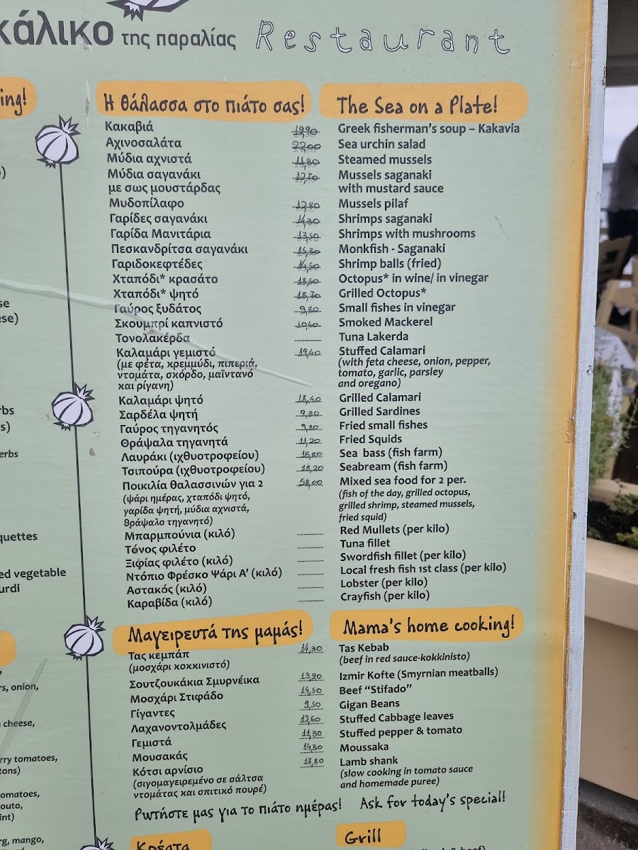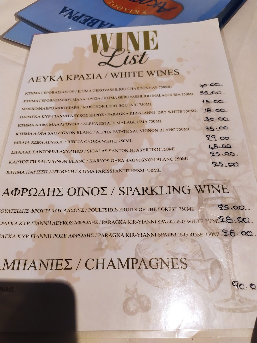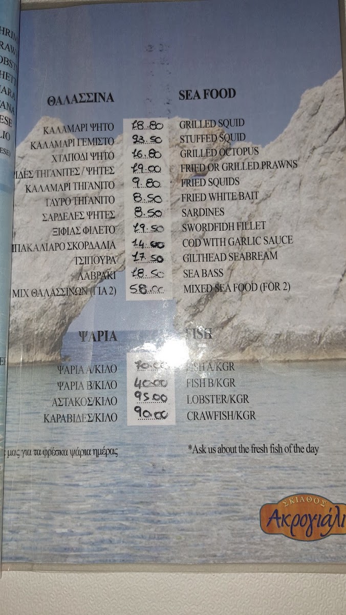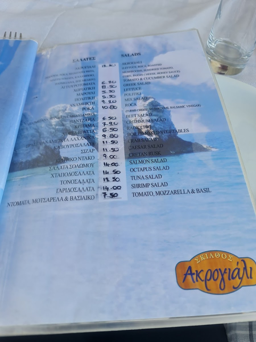 Akrogiali Tavern Menu